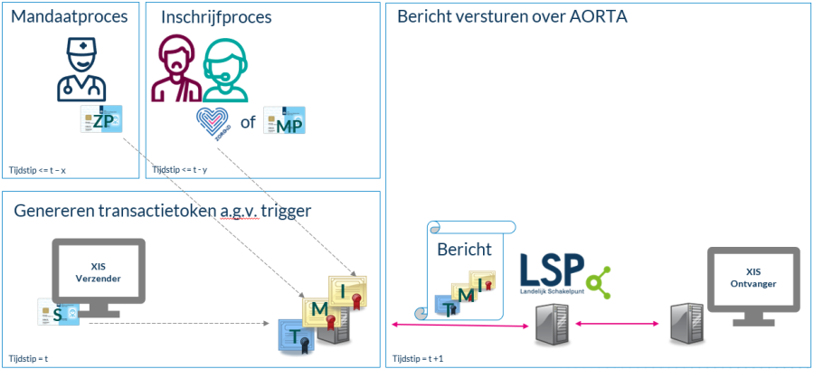 | T+1 | Bericht versturen over AORTA | XIS  | Mandaattoken  | UZI-servercertificaat |