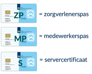 Zorgverlenerpas: Pas ten behoeve van zorgverlener waarvan het beroep valt onder artikel 3, 34 of 36a beroepen van de Wet BIG. De certificaten op de pas bevatten de unieke identificatie (UZI-nummer) en de functie (UZI-rolcode) van de betreffende zorgverlener.